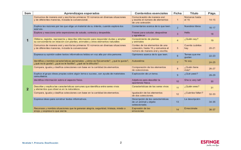 Encontrarán tablas que indican cómo están organizados los contenidos esenciales y a qué aprendizajes esperados corresponden las fichas por cada asignatura y grado.